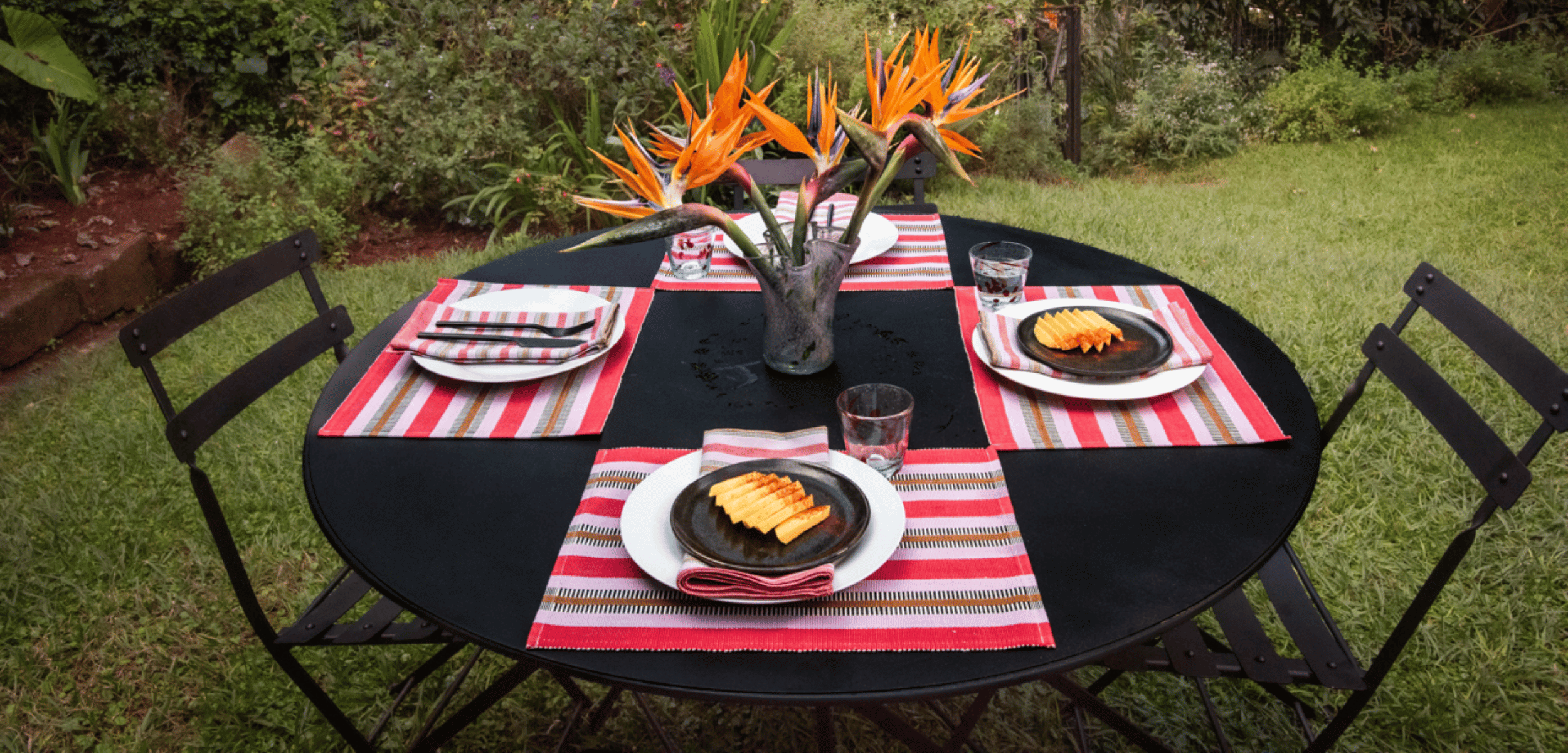 Striped in vibrant red, lilac and brown, our Upendo placemats are designed to make your food pop